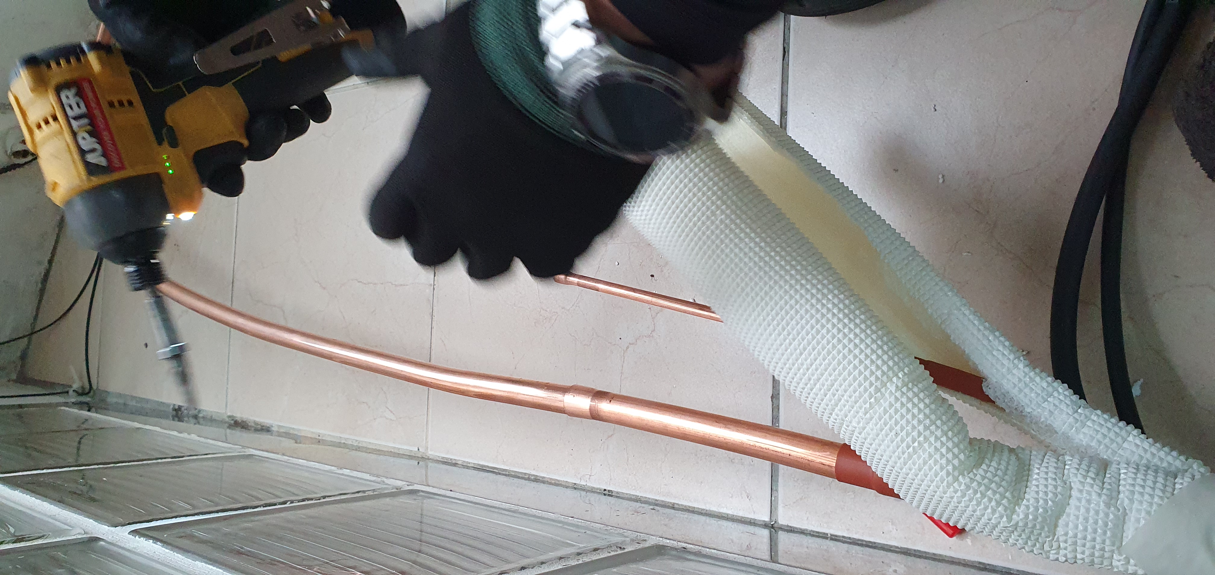 외부로 남는 배관을 작업하기 힘들어
