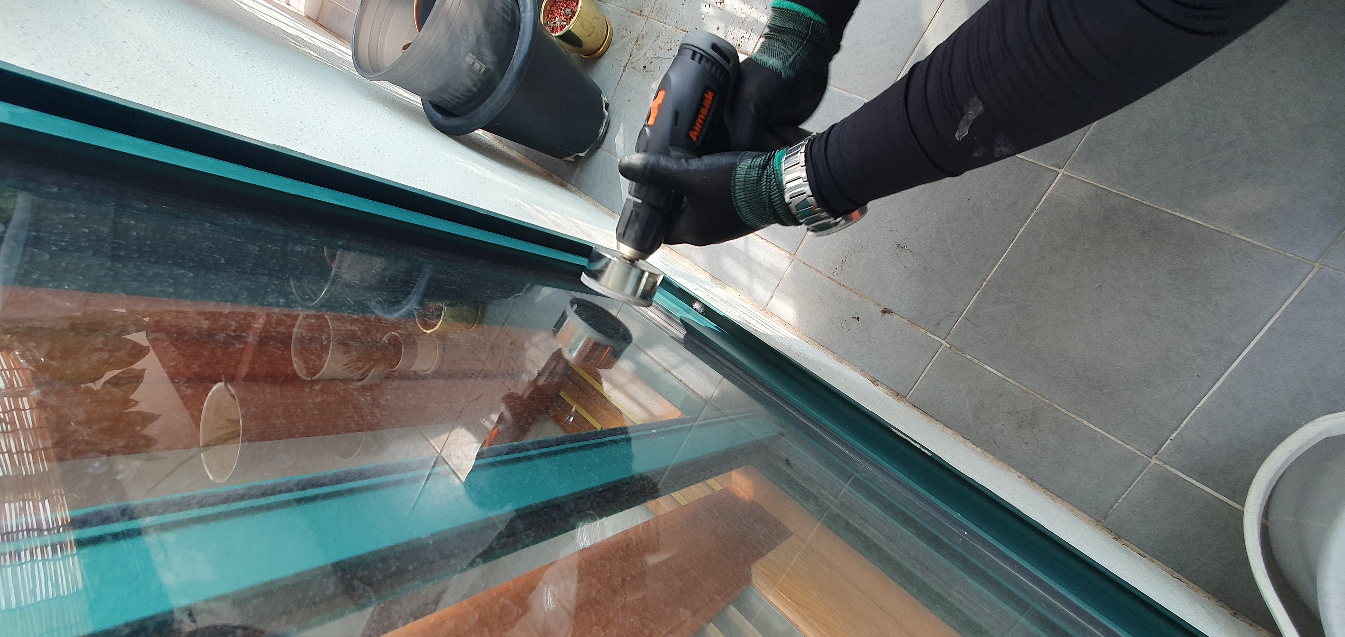 다시 유리타공을 하고 좁고 막혀있는곳에