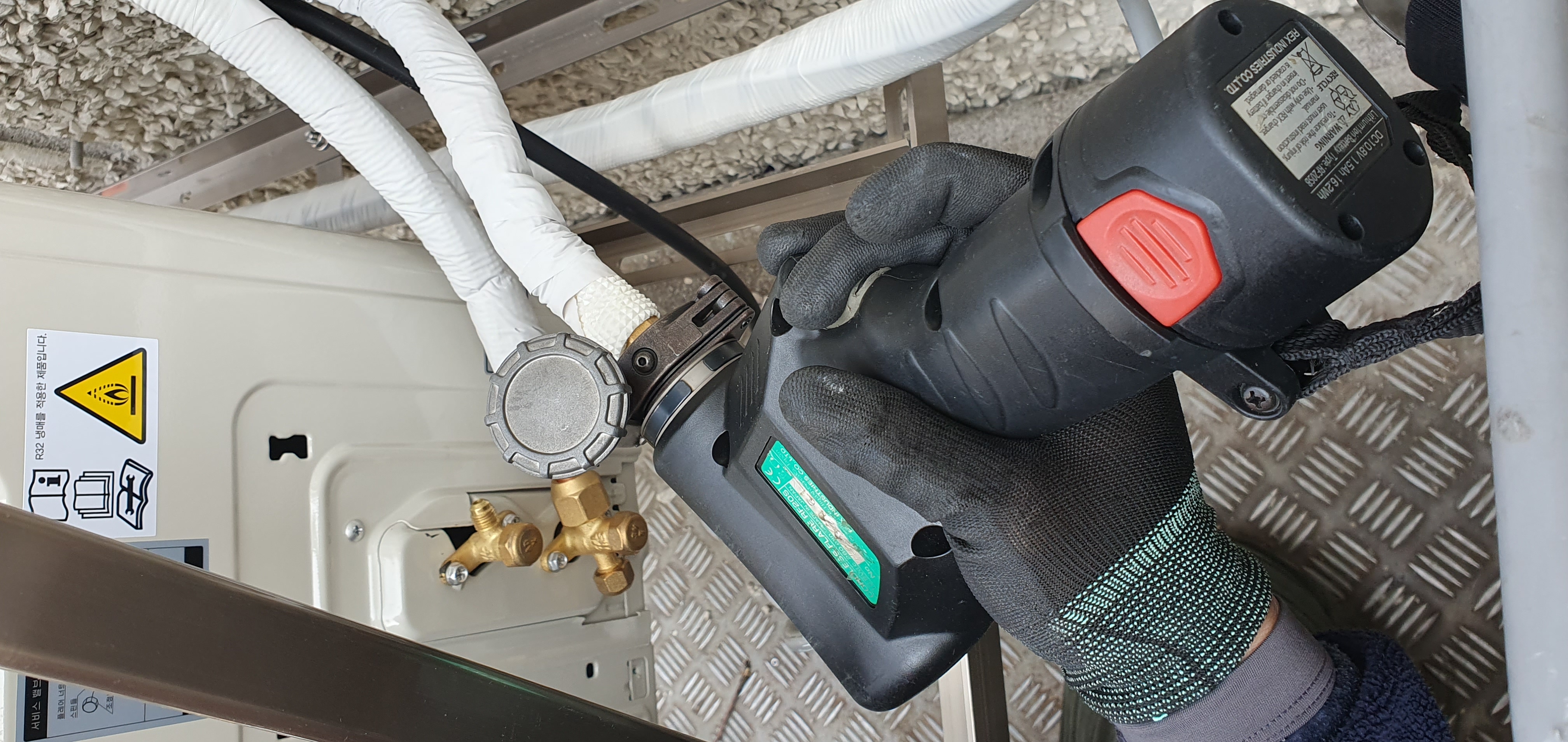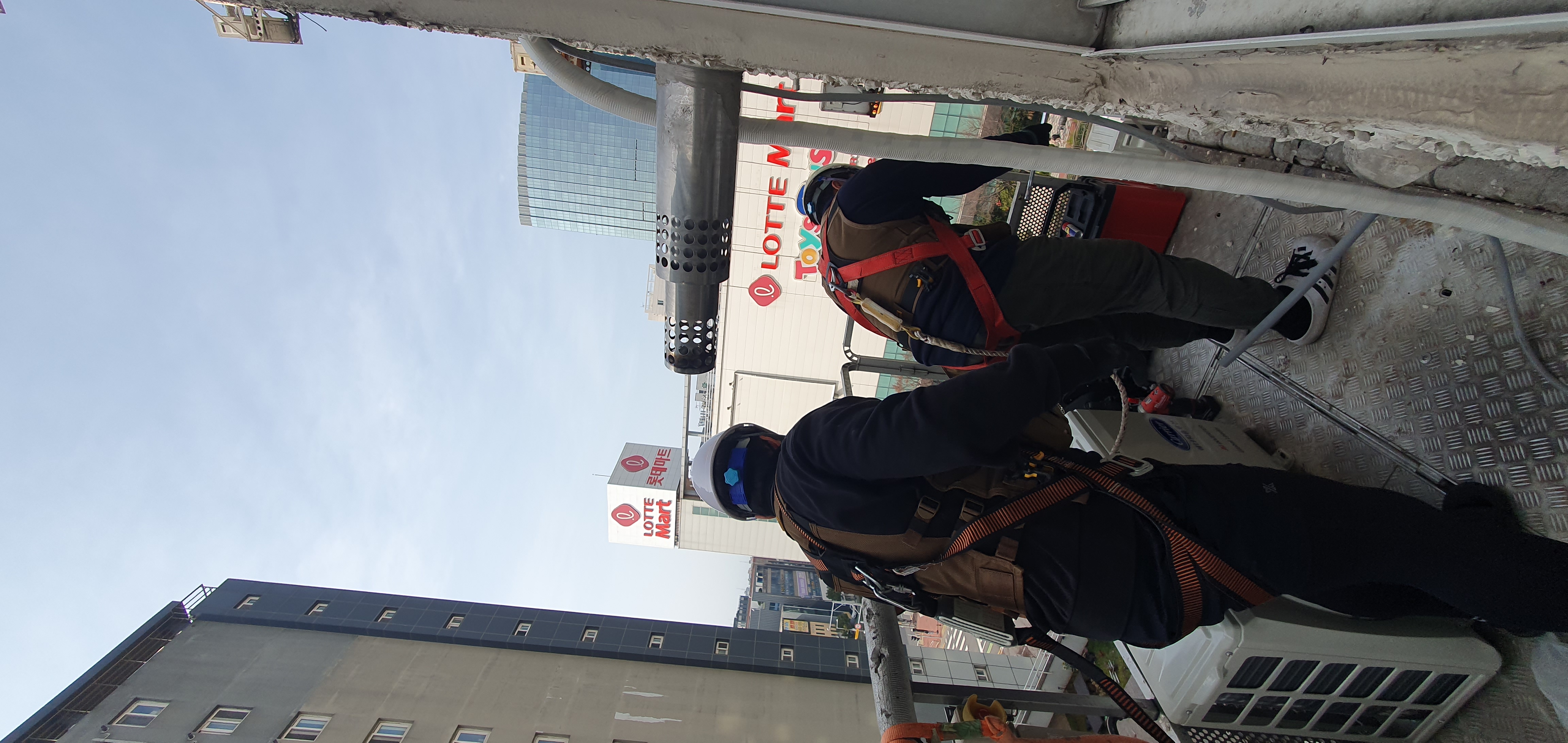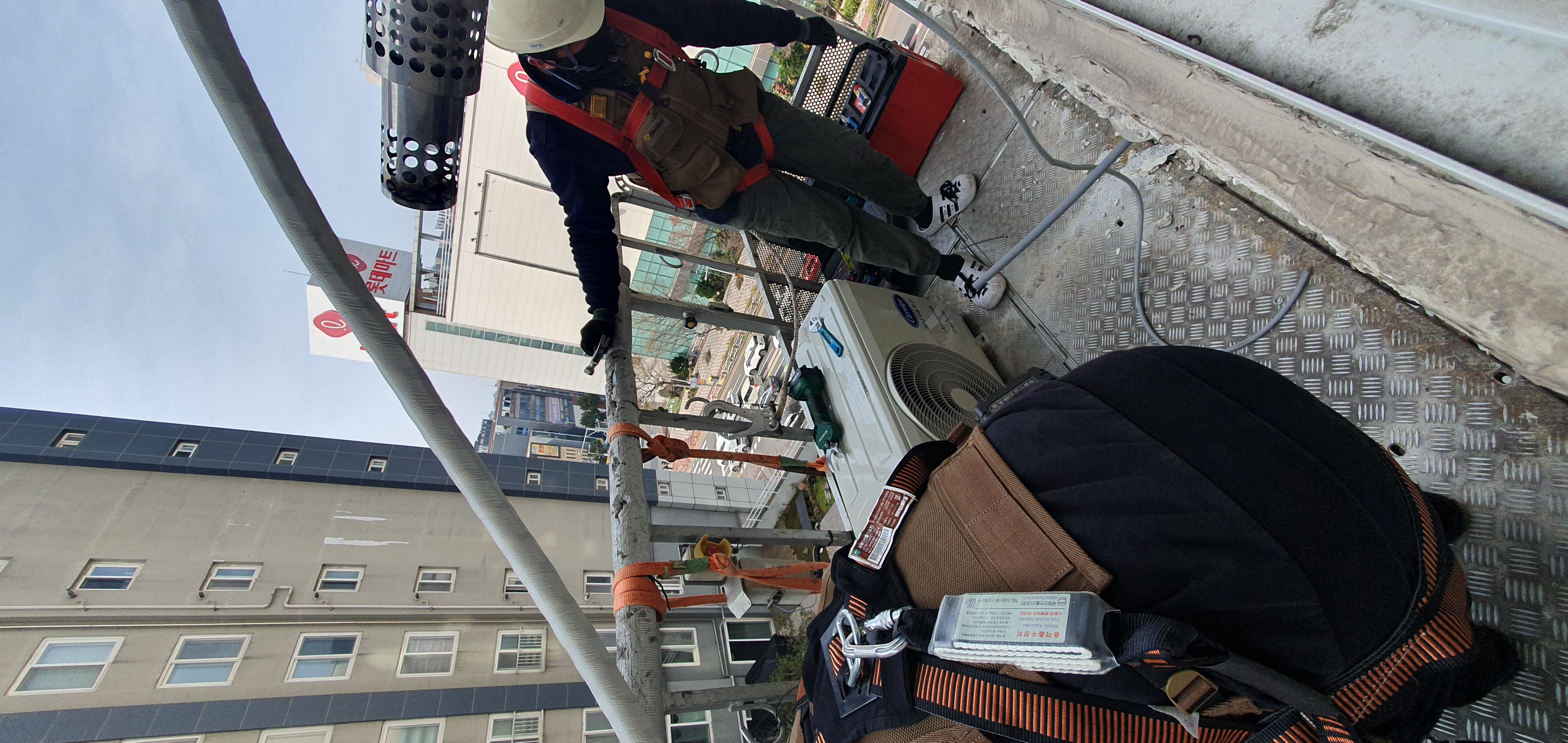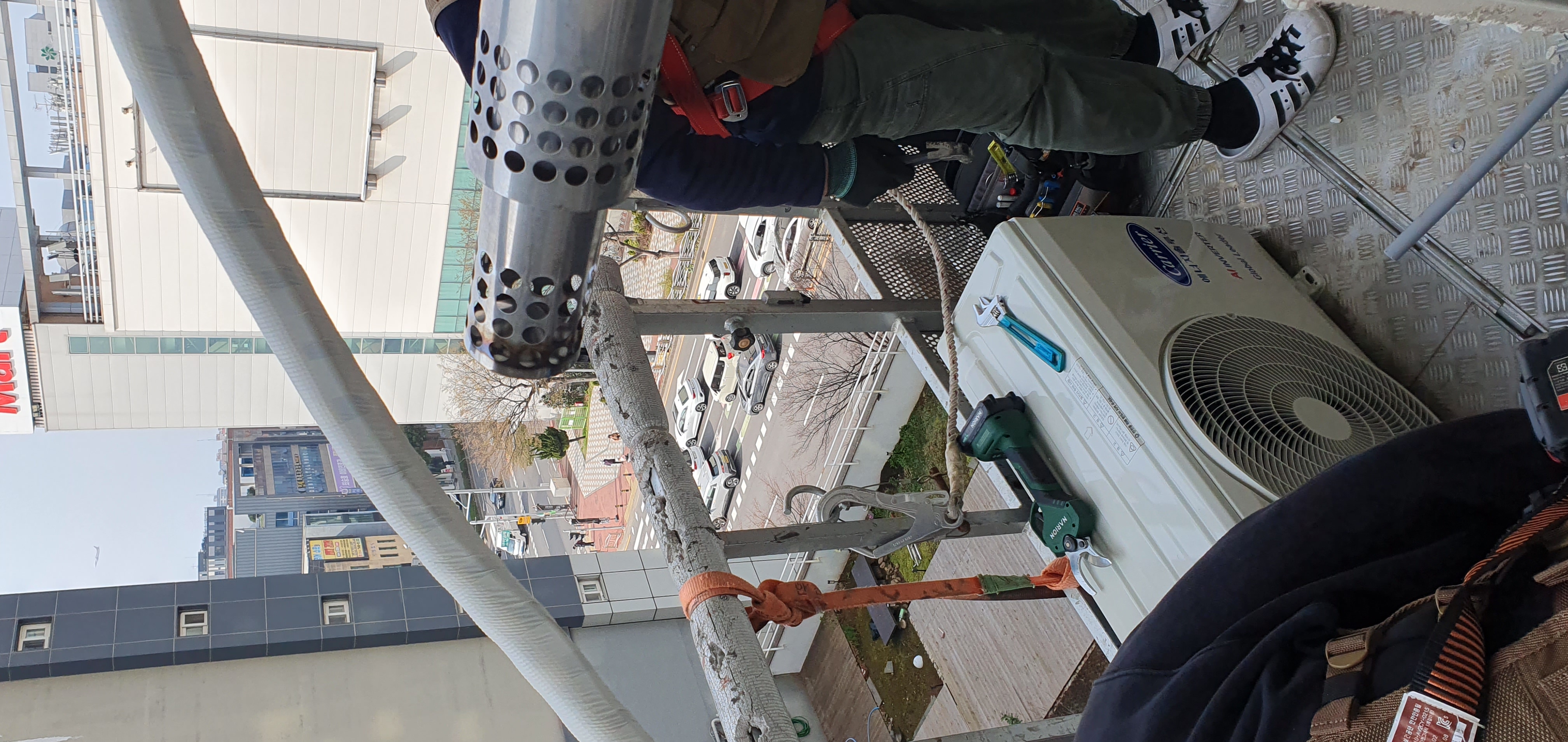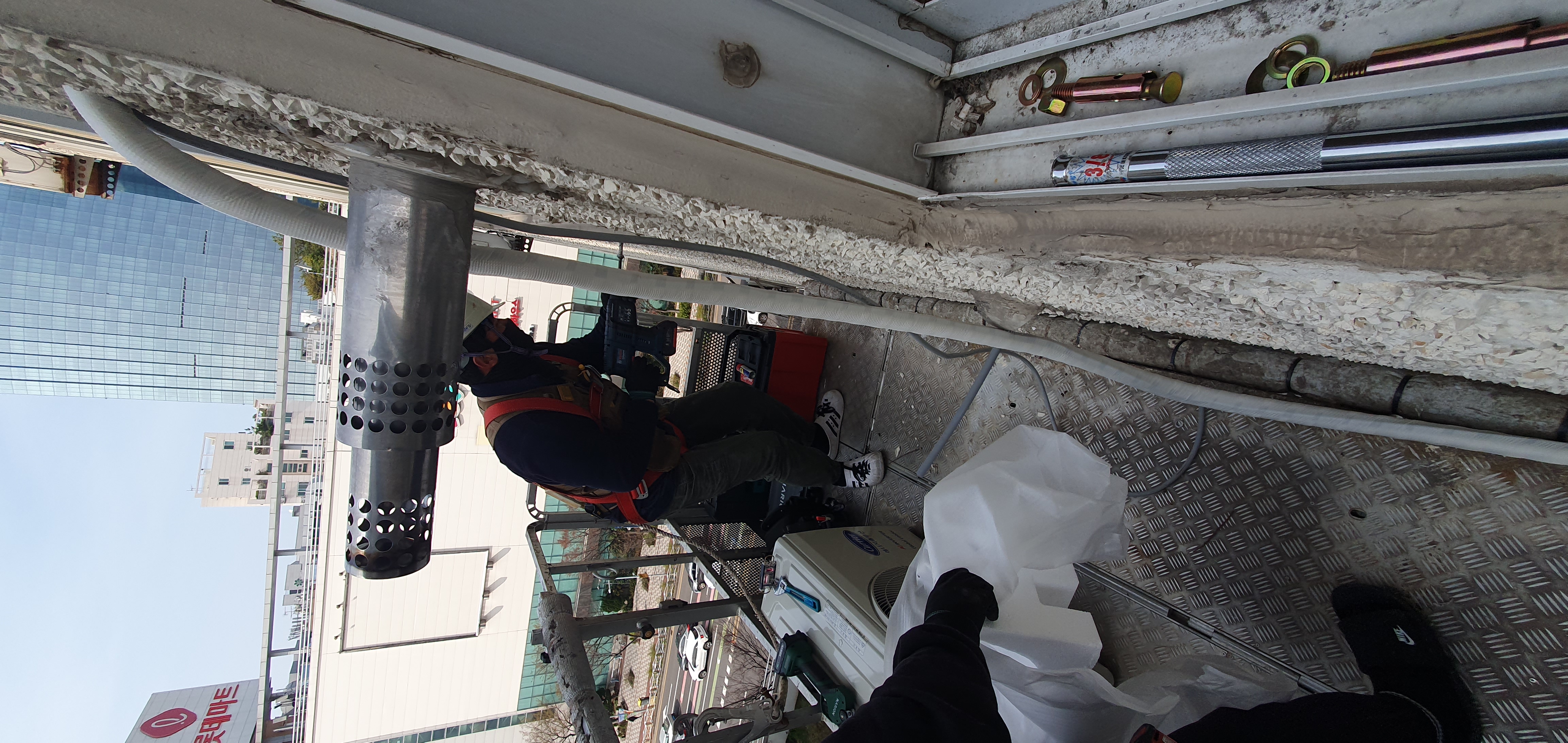 타공하나하고 실외기 작업입니다