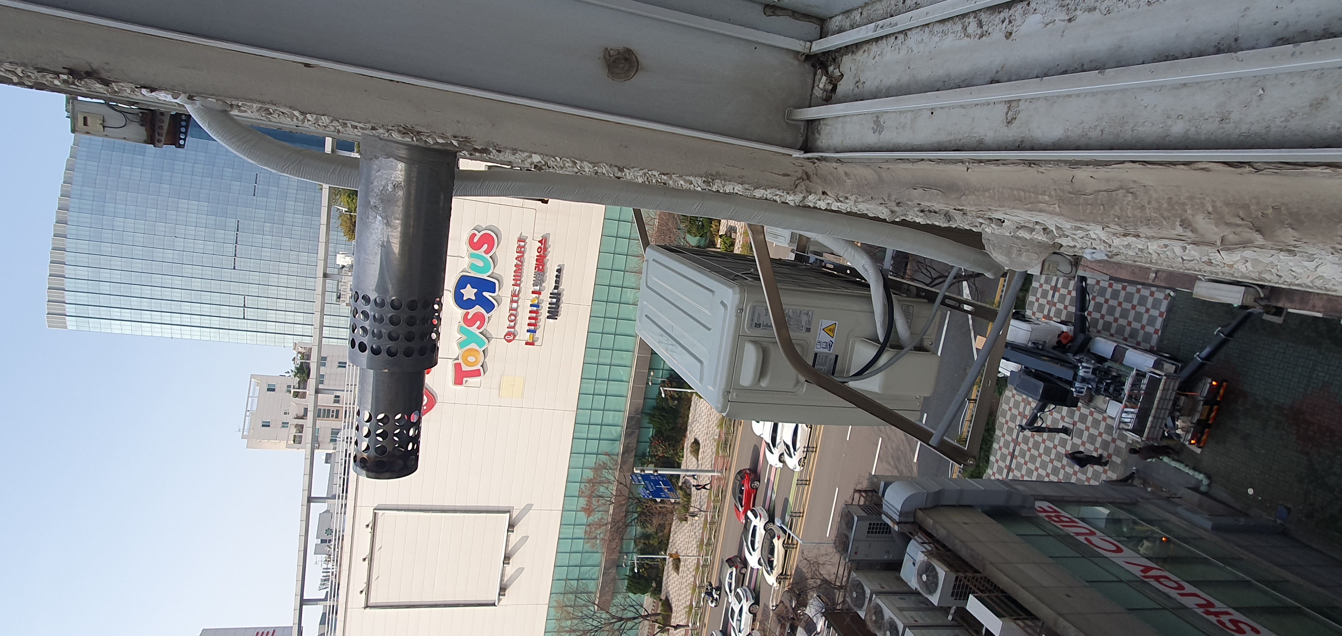 옥상에서 케노피로 배관 내리고