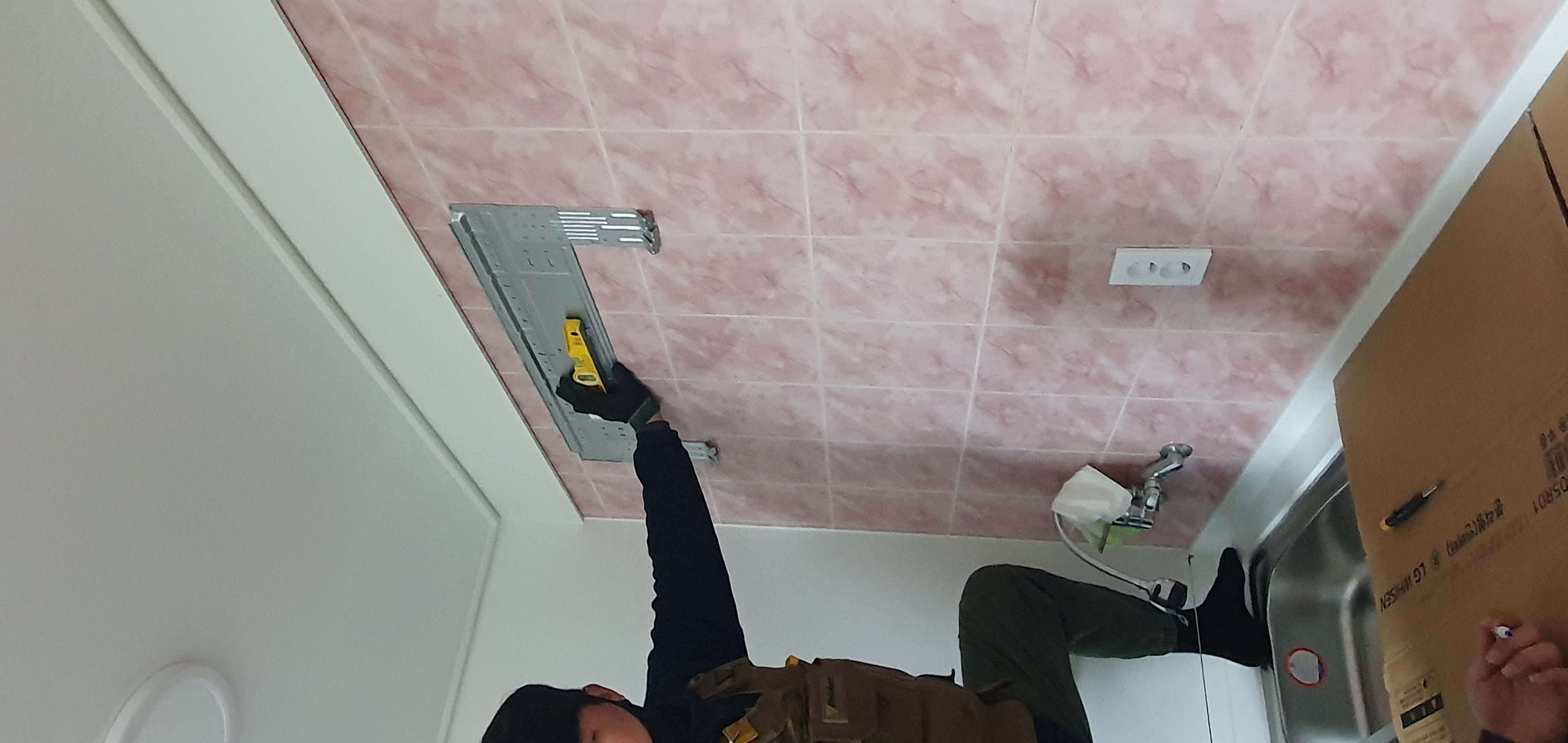 브라켓 고정하고 타공을 했습니다