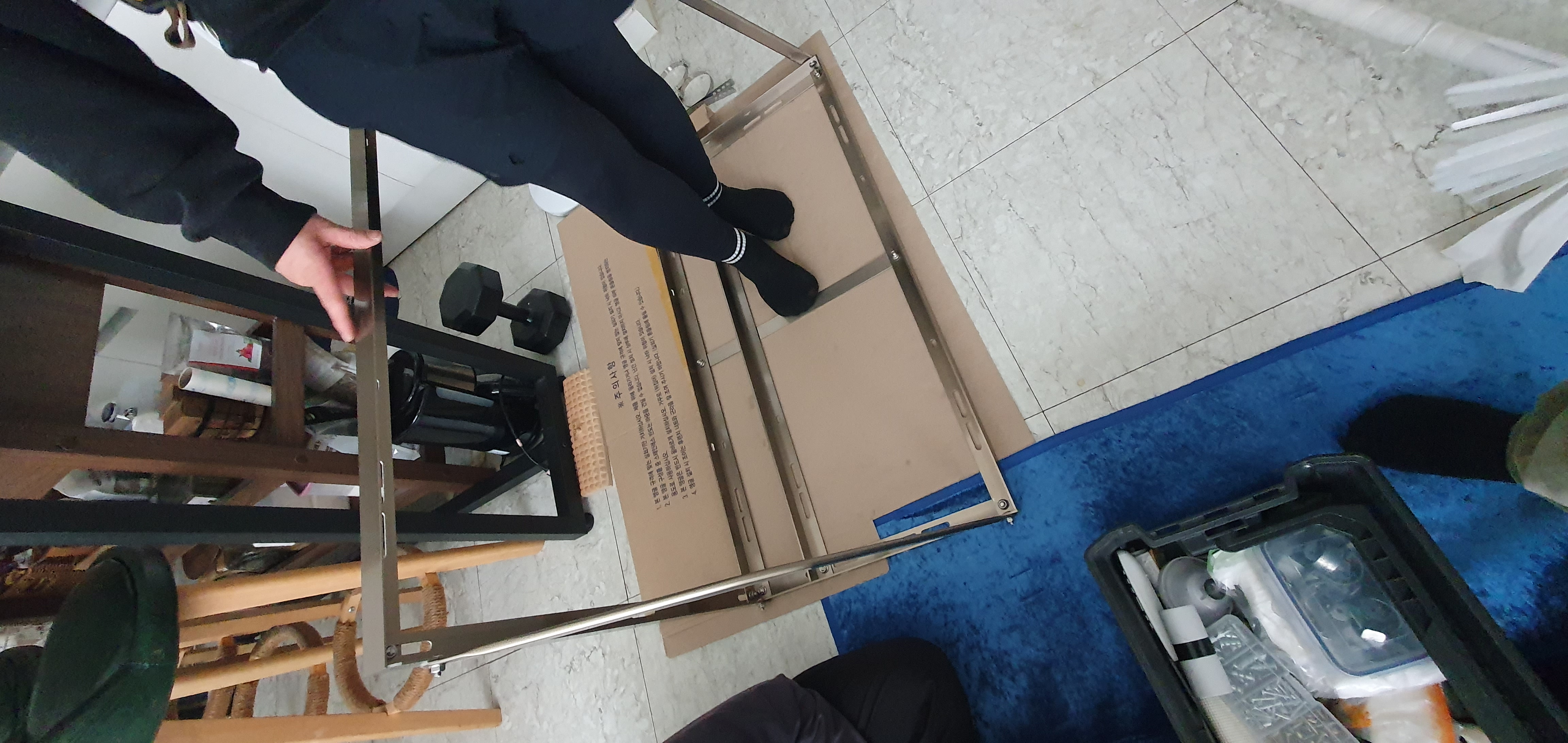 앵글까지 조립하고 장비 오기를