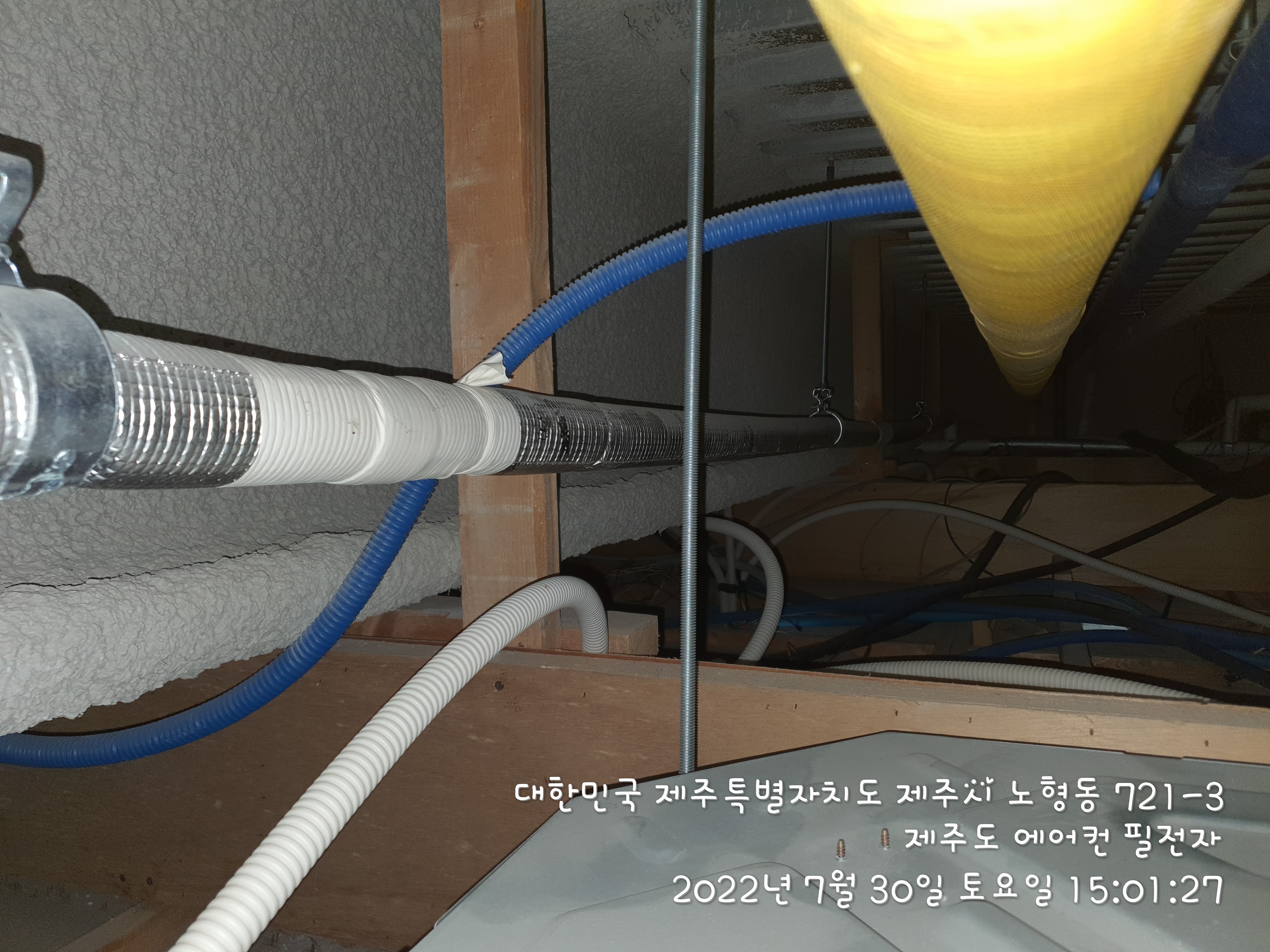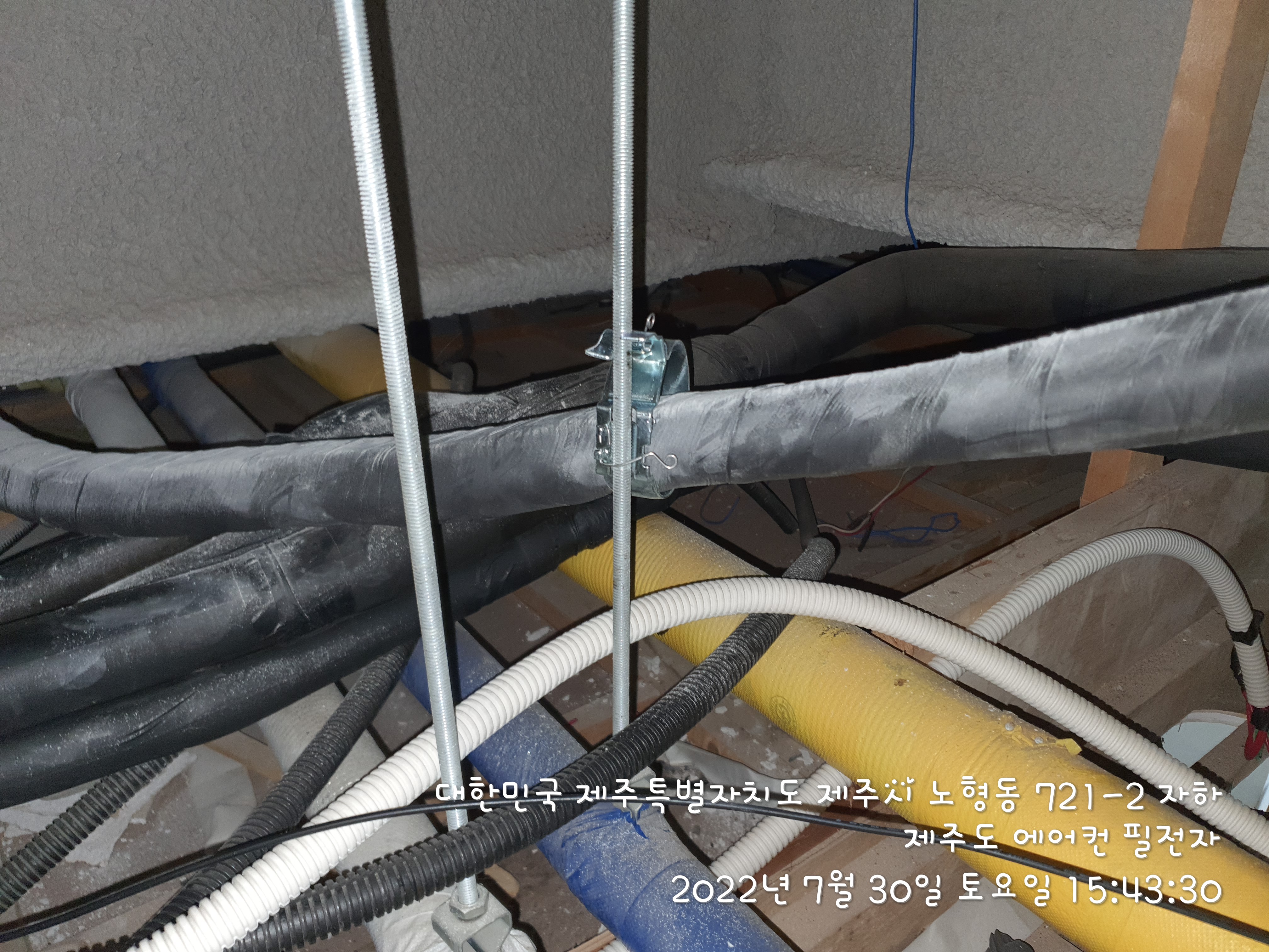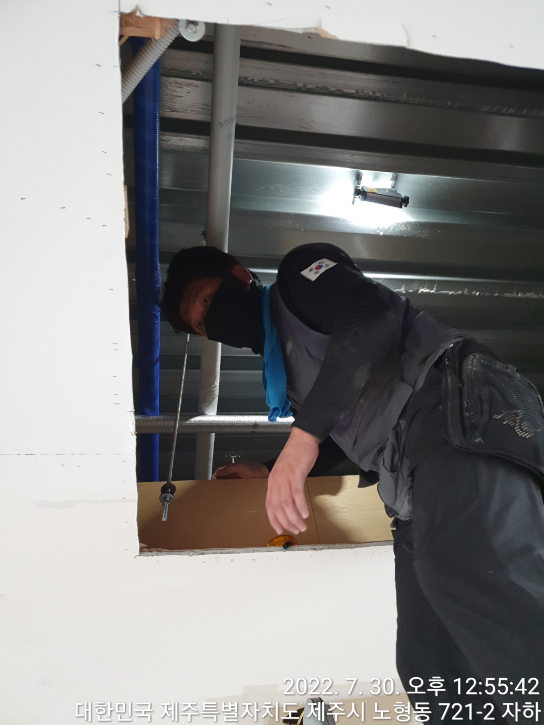 천정속에서 배관이랑 드레인작업을 완료 했습니다