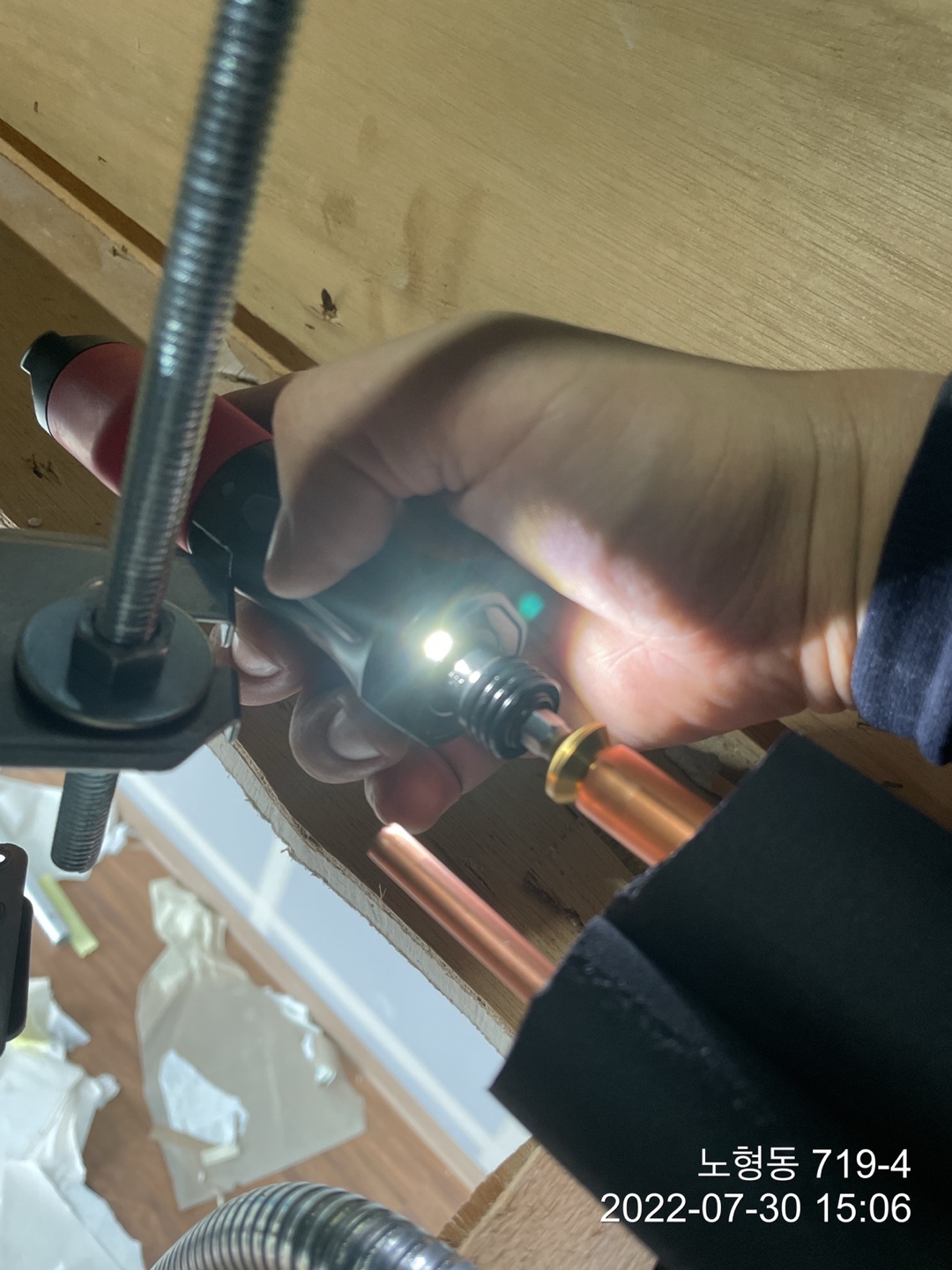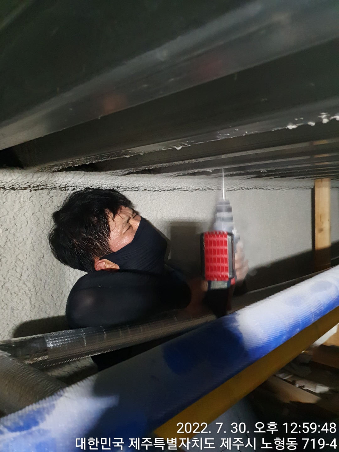 배수펌프로 천정속 pvc에 작업했습니다