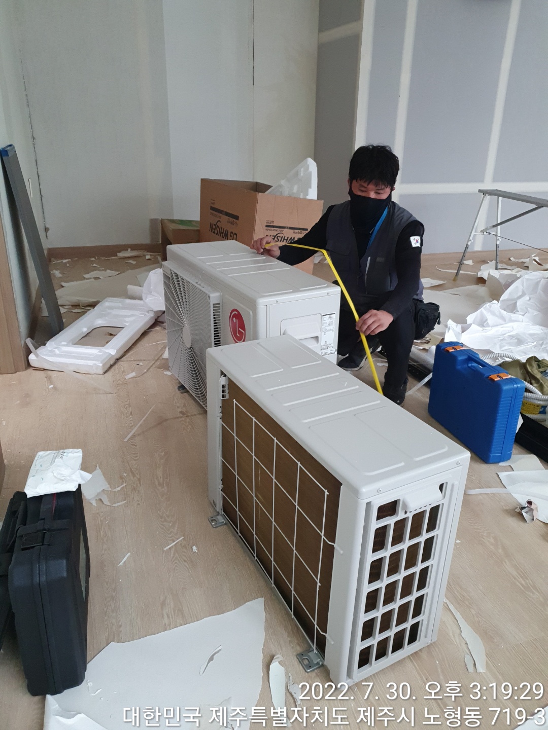 실내기 설치하고 작업을 이어갑니다